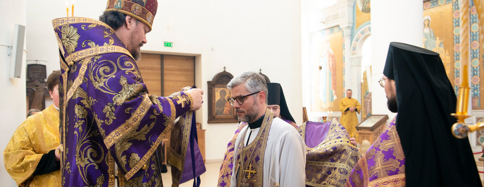 Lors de la petite entrée, en reconnaissance de son zèle au service de l’Église du Christ, Mgr Nestor a honoré le père François Esperet en lui accordant le droit de porter l’épigonation et la kamilavka. Il a également tonsuré hypodiacre le lecteur Maxim Beliaev, ancien élève du Séminaire (promotion 2024). À l’issue de la Liturgie, Mgr Nestor s’est adressé aux fidèles avec une homélie.