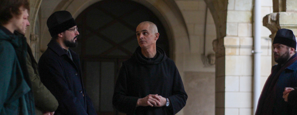 L’après-midi s’est poursuivi par une rencontre fraternelle avec les moines et par la découverte de différents lieux de l’abbaye : la bibliothèque monastique présentée par le frère Bernard, ainsi que l’atelier de paléographie musicale guidé par le frère Paul. La journée s’est conclue par une conférence du frère Xavier sur la spiritualité dans l’Église latine.